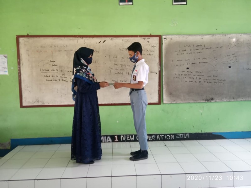 PEMBAGIAN SERIBU MASKER KEPADA SISWA SMAN 1 LEMBAR