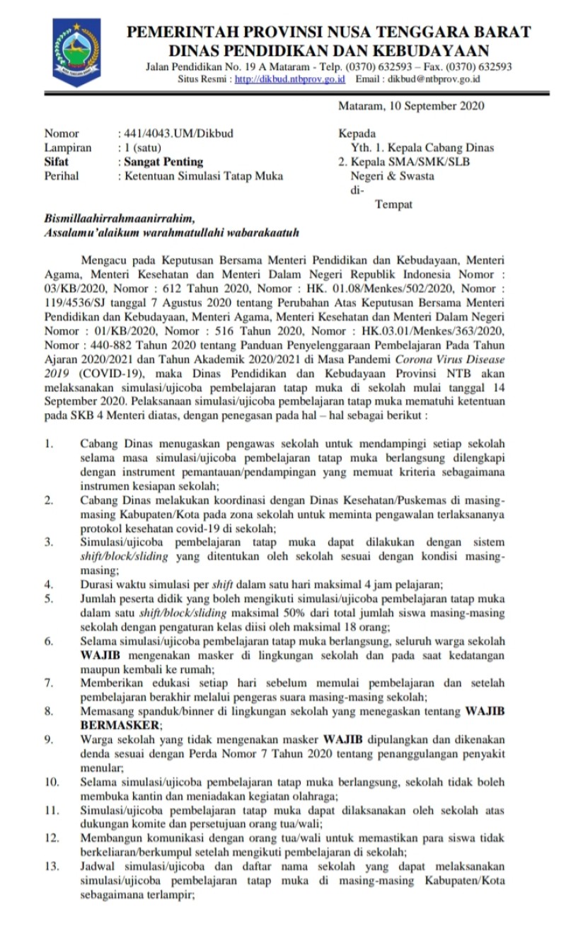 BERDASARKAN SURAT EDARAN PEMERINTAH PROVINSI NUSA TENGGARA BARAT